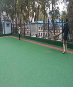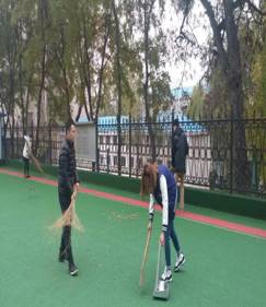 每天早晨的第一件事就是清扫门球场,门球是穆老师、张老师等十几人最爱的娱乐活动,但是,由于秋天的到来,落叶都落在了门球场内。为了方便老师们进行活动,我们每天的第一件事就是清扫门球场。虽然这段时间气温下降,加大了我们清扫的难度,但是,一想到老师们可以更好地进行活动,我们就更有干劲了。