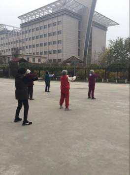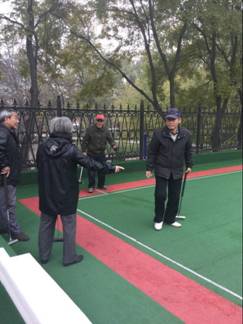 老年人最需要的就是陪伴,而这就是我们实习最大的任务。老干部活动中心的老人们的孩子基本上都在忙工作,很少有时间陪伴老人,为了让退休的老师们有一个良好的心态,有一个健康的身体,我们就需要多陪伴他们,了解他们的需要,走进他们的生活。天气晴朗时,门球场上总是可以看到几抹身影,穆老师他们又在进行门球比赛了。旁边的庭院里,张老师带领着一些老师打起了太极,看他们打了那么认真,每一个动作都很到位,看着他们认真的样子,我们的心里不免有一丝感动-在自己年华逝去时,还可以互相为伴,共同娱乐。也是人生一大幸事啊。