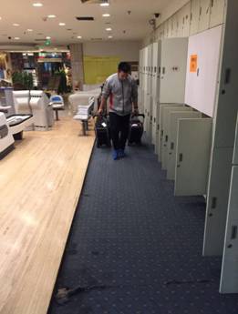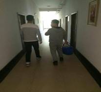 右图为实习生打扫场地卫生,主要工作是将场地拖干净,把桌椅擦干净,把办公室打扫干净。