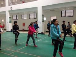 进入运动部门之后实习生必须报告每天的工作任务量以及时刻对会员的服务态度,而且每次开完会都有大概半小时的时间集体活动,有时候会让团操教练带我们上课娱乐一下,以下是拍摄的图片。