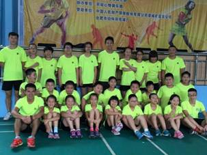 DS羽毛球培训部学员。图片第一排最左边是胡明,最右边是王成斌。培训班上课期间,其他实习生会作为助教参与教学工作!