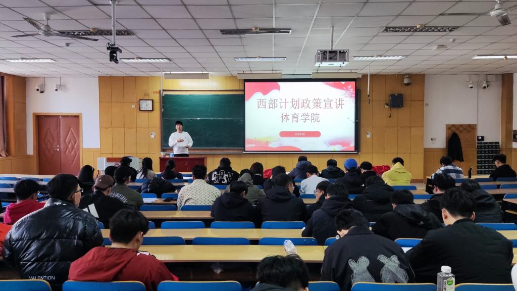 宣讲会上,李老师‌围绕‌2025年“西部计划”‌的招募流程、岗位类别、政策保障及服务内容展开全面解读。重点阐释了体育专业毕业生在基层教育、全民健身服务、乡村振兴等领域的发展空间,强调西部计划是“锤炼本领的实践平台,更是实现人生价值的重要机遇”。针对学生关心的岗位分配、待遇保障、服务期满就业支持等问题做了解答。