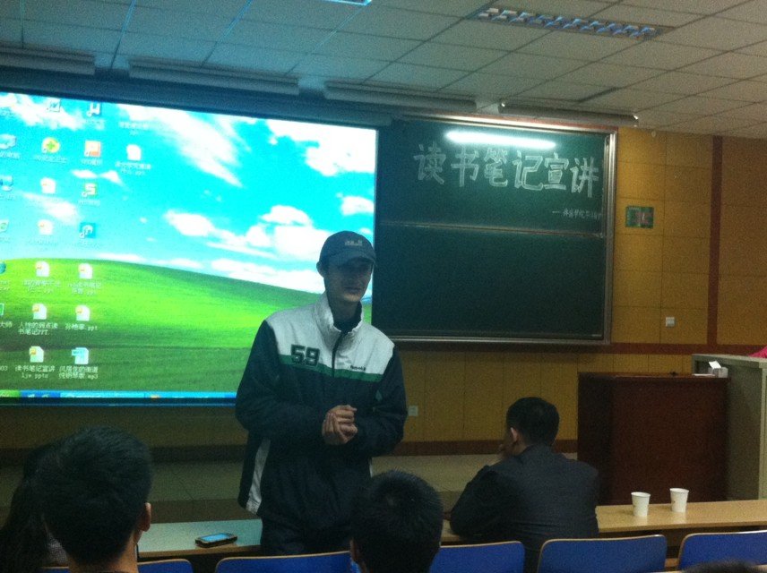 读书笔记活动正在如火如荼的进行中,党总支副书记贾鹏老师和分团委书记唐伟老师特意组织进行了读书笔记的宣讲活动,希望同学们能对读书产生更近一步的兴趣。学生会各部门挑选学生代表与大家共同分享了近期读书的心得与体会。
