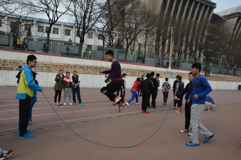 随后,一场精彩且饱含青春活力的趣味运动会拉开帷幕,第一项是“两人三足”,每组队伍都认真练习,待哨声开始,大家喊着整齐的口号向着终点前进,与对手展开了激烈的竞争;接下来的活动是“同心协力”,活动充分展示了同学们的团队协作精神;而随后的“跳大绳”“坐地起身”“2分钟八人下手颠排球”活动,更是带动了大家的激情,赛场上的同学们个个身手矫健,场下的同学们为比赛的运动员呐喊助威,场面异常热烈。