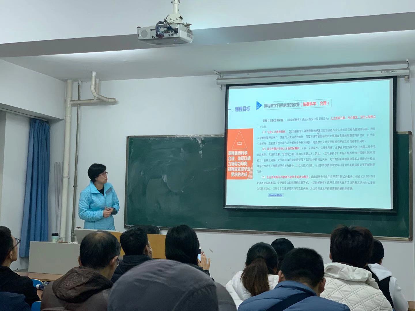 在院一层多媒体教室举办“体育类课程建设的理论与实践”教学沙龙,由于芳教授主讲,博彩平台各教研室主任、专业课与公体课教师及部分学校新入职教师参加,教学副院长吴剑主持。