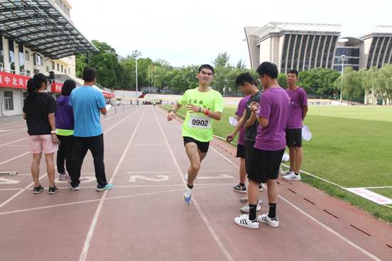 校园内道路上到处都是参赛者矫健的身影,他们有冲锋在前的学生竞速者,有不甘落后的教职工跑者,他们锐意进取,勇往直前,每个人都向着终点奋力奔跑。