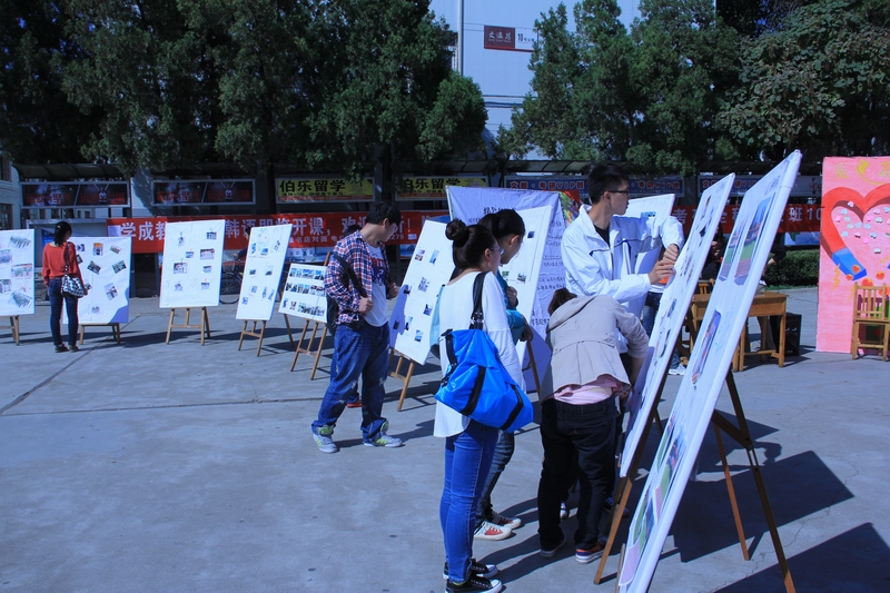 团委记者站主办,宣传部及艺术设计协会协办的全校级的“新生风采”摄影大赛作品展览会在一食堂门口举行。