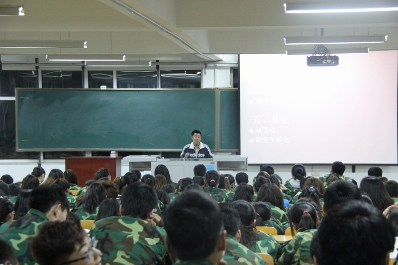 教学科科长吴剑结合《普通高等学校学生管理规定》和学校的相关规定悉心为同学们讲解了在学籍管理、考场规则、宿舍规定等方面的规章制度,并结合具体的案例分析让新生们对校规校纪有较系统全面的认识。在课堂上,新生们认真听讲并仔细记录,不时提出自己的疑问。教学科科长吴剑悉心听取所提出的问题,同时,作出详细的解答。