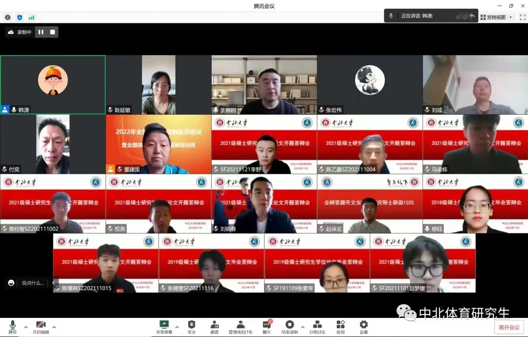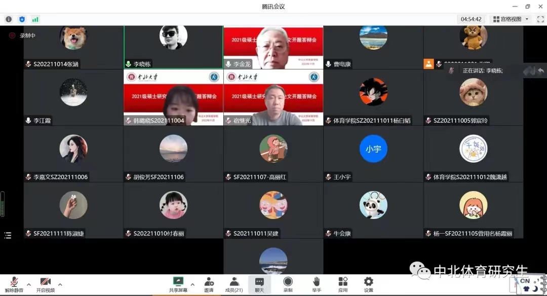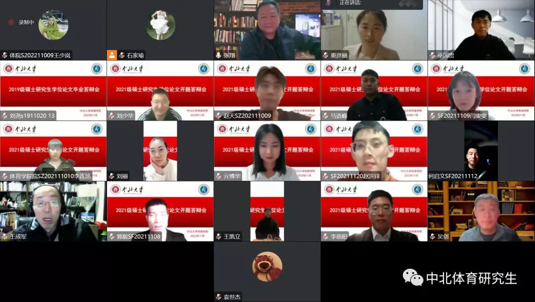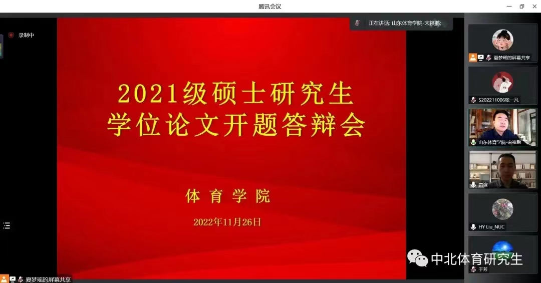 2021级硕士研究生学位论文线上开题答辩会于线上腾讯会议举行。开题答辩会特邀山西大学博士生导师李金龙教授、山西省体育局体育科学研究所董建国研究员、山东博彩平台