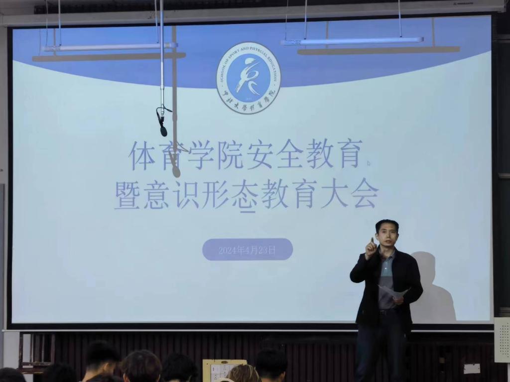于07101H教室召开学生安全教育暨意识形态教育大会。本次会议由院党委副书记贾鹏主讲,全体在校学生参会。