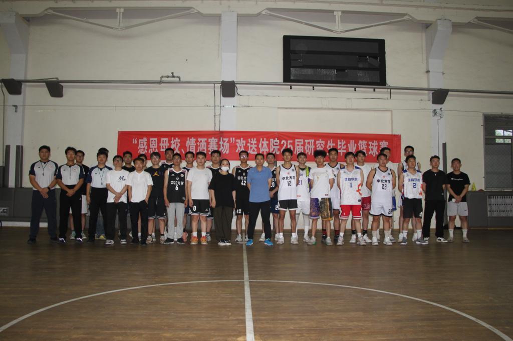 在东区训练馆举办“感恩母校,情洒赛场”欢送体院2025届研究生毕业篮球赛。本次活动由贾鹏副书记、李菲班主任及全体在校研究生参与。