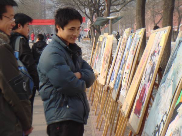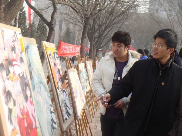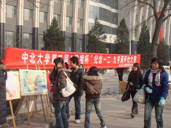 12月9日上午10:30,在博彩平台 图书馆门前,由体育与艺术学院举办的纪念“一二·九”运动七十四周年“意境杯”书画展在如火如荼的场面中举行。