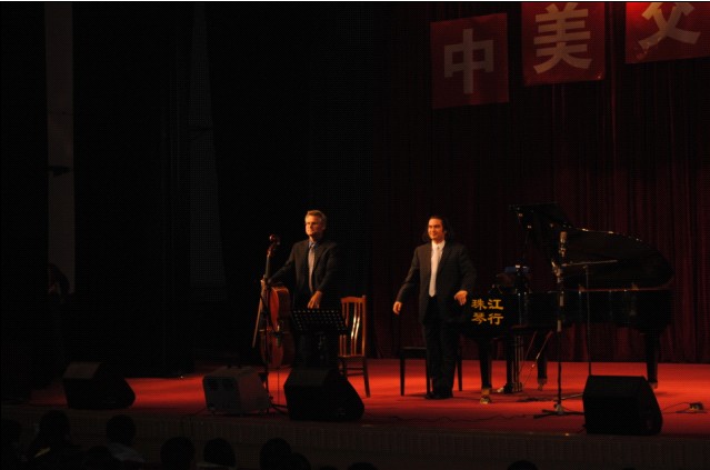 晚7点,“中美交流音乐会”在科艺苑隆重举行。戴波拉·卡娃西教授、本杰明·博仁、丹尼尔·戴维斯为大家做了精彩演出,博得了全体师生的热烈掌声。此次专家团来访不仅带来了先进的教学理念,各位专家精湛的演技更是令在座的所有来宾震撼。
