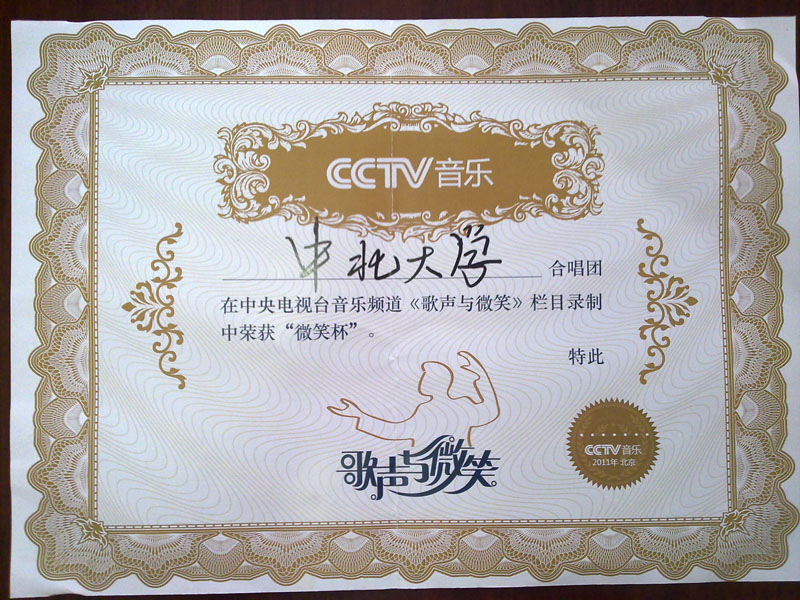 合唱团一行60人参加了中央电视台《歌声与微笑》节目的录制并获得“微笑杯”一等奖,再一次“唱响和谐旋律,展示中北风采”,为博彩平台
