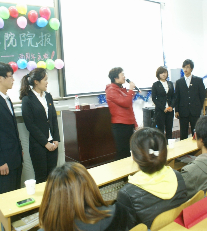 在12201召开院报创刊两周年庆典。出席活动的领导与嘉宾有:党总支书记王琳老师、院团委书记田维飞老师、大学生新闻社社长、广播站站长、各学院记者站站长、各社团(协会)会长等。