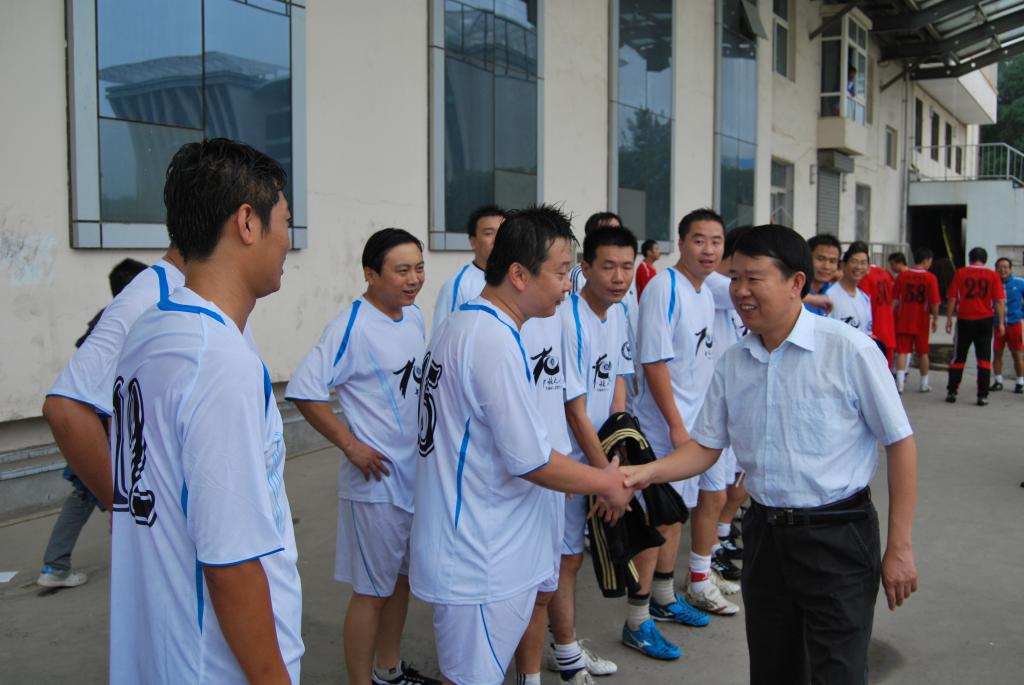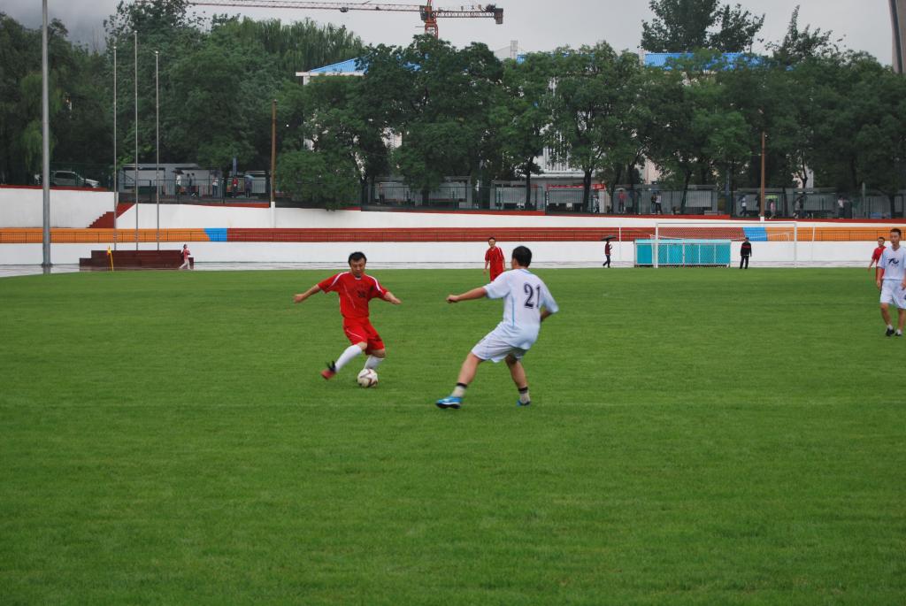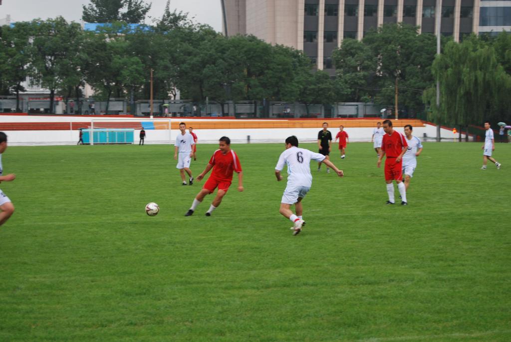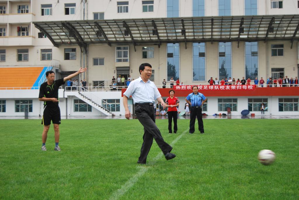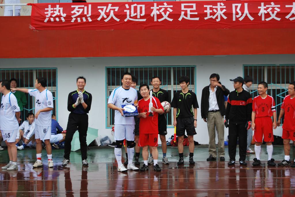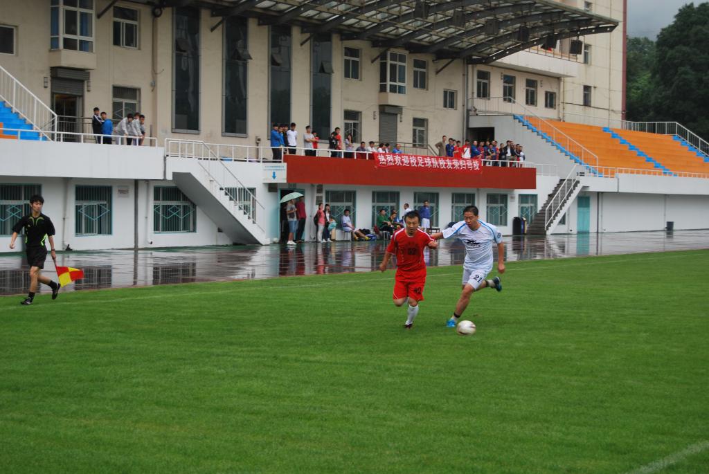 9月3日下午,由博彩平台 "华北工学院"时期毕业的足球队员组成的“校友足球队”和学校教工足球队,在学校天然草坪足球场进行了友谊赛。沈兴全副校长看望了足球队校友,并为比赛开球。天空虽然下着雨,队员们依然热情高涨,雨中的比赛更加紧张激烈,精彩纷呈,最后校友队以6:4获胜。比赛不仅增进了校友与在校教工的友谊, 更增加了足球队校友对母校的眷恋,绿荫场上凝结着校友们对母校的一片深情。