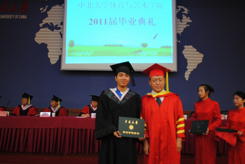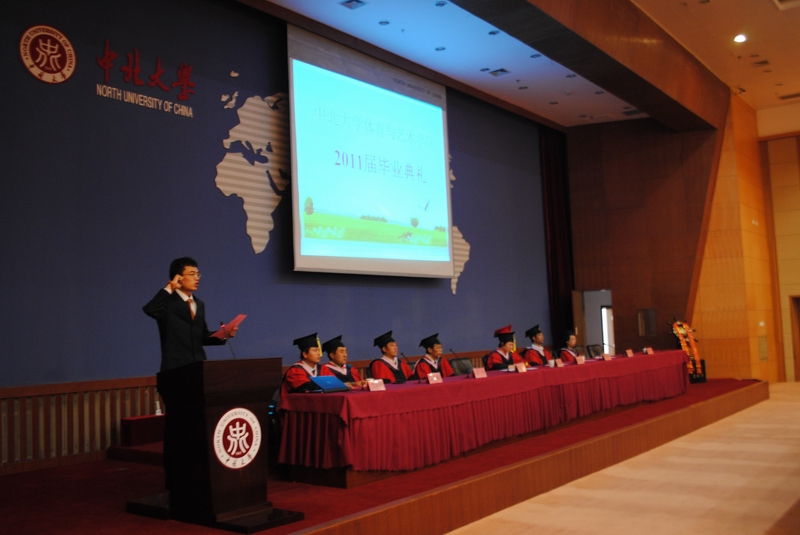 春华秋实重温奋斗路,饮水思源感恩母校情,6月27日上午体育与艺术学院2011届本科毕业生毕业典礼暨学士学位授予仪式在图书馆五楼学术报告厅举行。学院党总支书记王琳,院长刘定一,副院长曹电康,党总支副书记曹凤才,体育系主任付弈,艺术系主任王旭东,音乐系主任王燕平,各个科室科长参加了仪式,仪式由党总支副书记曹凤才主持。
