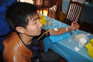 领导的大力支持,并把无偿献血活动作为一项经常性活动来抓。10100441团支部成员协助太原市红十字血液人员对献血者进行一系列的相关检测。全校师生也非常积极地报名参与,响应此次活动的倡议,并参与活动。截止到下午一点钟,血车上的血袋就已经满了,而此时来献血的同学仍陆续不断。活动期间,约100多名志愿者加入到此次活动中来,帮助血液中心医务人员处理各方面的事情,每个人都脸上都洋溢着笑容,因为自己做了真正有意义的事情。