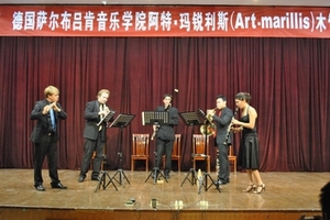 来自德国萨尔布吕肯音乐学院阿特·玛锐利斯木管重奏组,由长笛演奏与室内乐演奏双硕士研究生:克里斯提安·鲁恩克(德国人,曾获得“德国青年音乐家”独奏和重奏双冠军),双簧管演奏与室内乐演奏双硕士研究生:马克西姆·马尔科夫(乌克兰人,曾获得“乌克兰洛夫诺国际木管重奏”第一名和“Allegro Vivo”音乐节第一名),单簧管演奏与室内乐演奏双硕士研究生:马卢·加罗法洛(女,卢森堡人,是“雅马哈音乐基金会”奖金获得者,并多次在卢森堡欧洲国际音乐家比赛和罗马音乐家比赛中获奖),圆号演奏与室内乐演奏双硕士研究生:李涛(中国太原人,在中国圆号学会举办的比赛中获得优秀表演奖),巴松演奏与室内乐演奏双硕士研究生:里卡多·奥利为拉·奥雷利奥德(巴西人,获得德国的DAAD奖学金,并在多次比赛中获奖)五位年轻的音乐家组成。