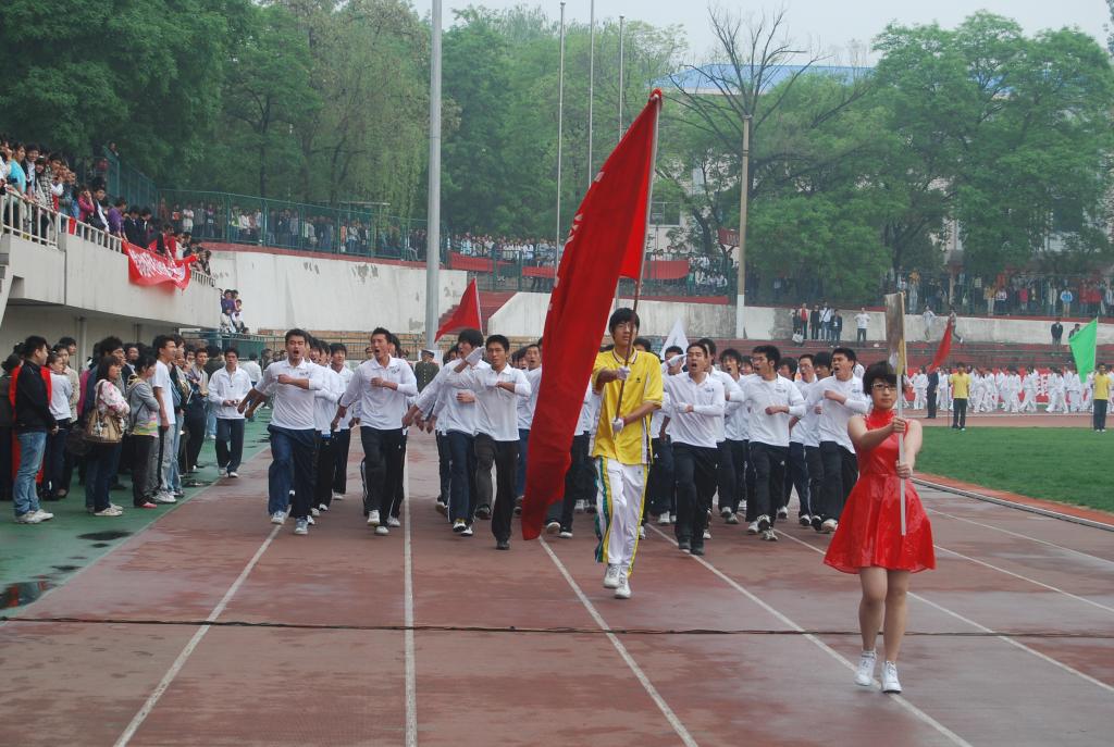 第31届春季田径运动会在校田径场拉开帷幕。随着开幕式开始,整个田径运动场激荡起慷慨激昂、催人奋进的运动员进行曲,精神抖擞的校旗队缓缓地走过主席台,他们的步伐是如此的坚定,他们的神情是如此的自信,他们手中的旗帜是如此的鲜艳;整齐有致的行进,风中猎猎的彩旗,铿锵有力的号令,来自学校各学院及部处的14块方阵代表队,一路昂扬而来,他们稳健的步伐踏出了自信,他们嘹亮的口号喊出了自信,他们青春的脸庞溢出自信。