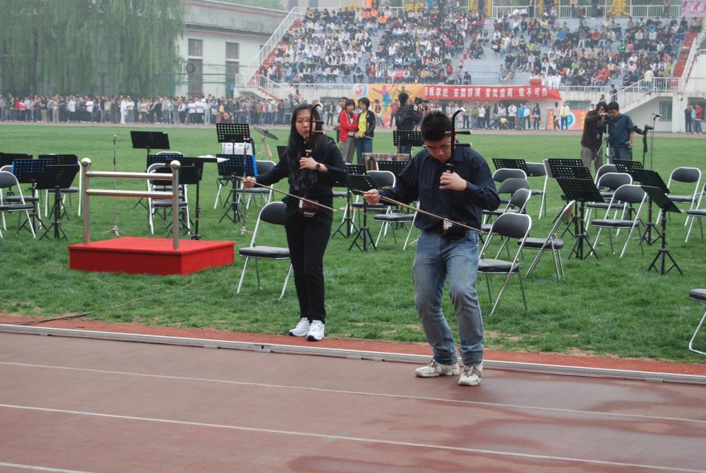 的崛起和腾飞。第二幕是乐器表演,这是体育与艺术学院为此次校运会专门编排的一个节目,体现了音乐系的特色。第三幕为歌曲表演,歌声响彻整个运动场。
