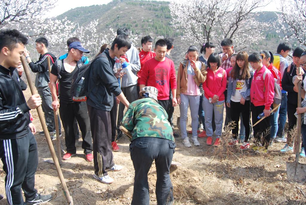 在唐老师的带领下大家热火朝天的忙活起来。男同学负责挖坑,女同学负责放苗,在幕云山工作人员杨阿姨的指导下,共栽种松树苗共计300于株。最后女生们积极的去帮着接水,为小树苗带来新鲜的养分和水分。下午三时才集体返回校园。