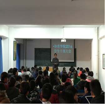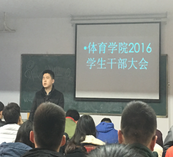 2016年学生干部大会”。学院党总支副书记贾鹏老师、学生科科长李士荣老师、团委书记唐伟老师、辅导员王华慧老师参加了本次大会。